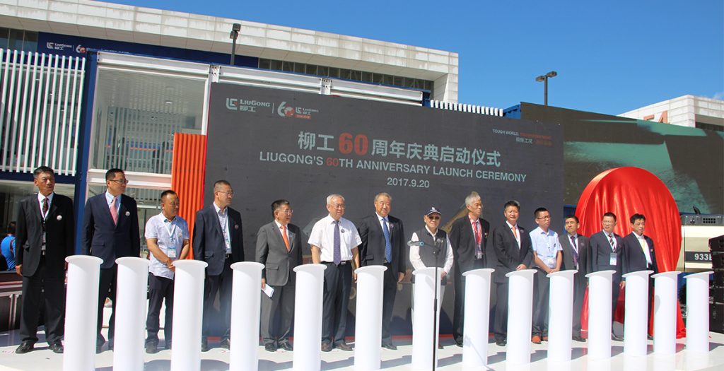 September 20, 2017, Beijing – Today, at BICES, LiuGong held a ceremony to kick off its 60th Anniversary celebration. Started in 1958, LiuGong’s powerful heritage is one of the keys to its success today. The ceremony included the introducation of its commemorative logo and anniversary machines, which will be available in limited edition to customers. The event was attended by leaders of Chinese construction machinery associations, former leaders of LiuGong, current leaders, important customers and guests.