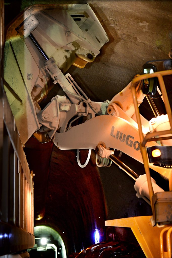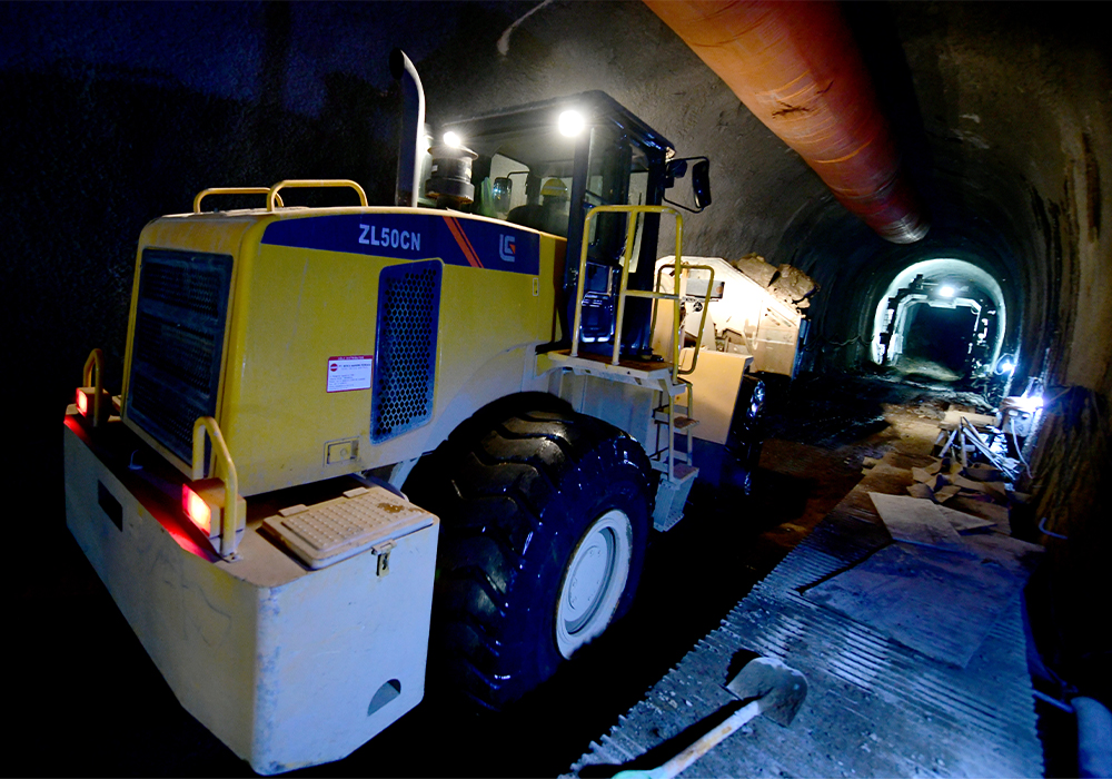 隧道施工工况最为恶劣,隧道里空气质量差,并且非常潮湿,不时有落石滚落下来。华体会体育ZL50CN中国华体会集团官网配置康明斯L9.3发动机,具备完美匹配,启动快,动力强劲,低速大扭矩,油耗更低等特点,全面适应隧洞施工重载、高强度、高可靠性要求。同时,结合华体会体育技术积累,在标准型的基础上针对隧洞侧卸施工工况,对动臂、铲斗、铰接等进行了全方位的加强和优化。