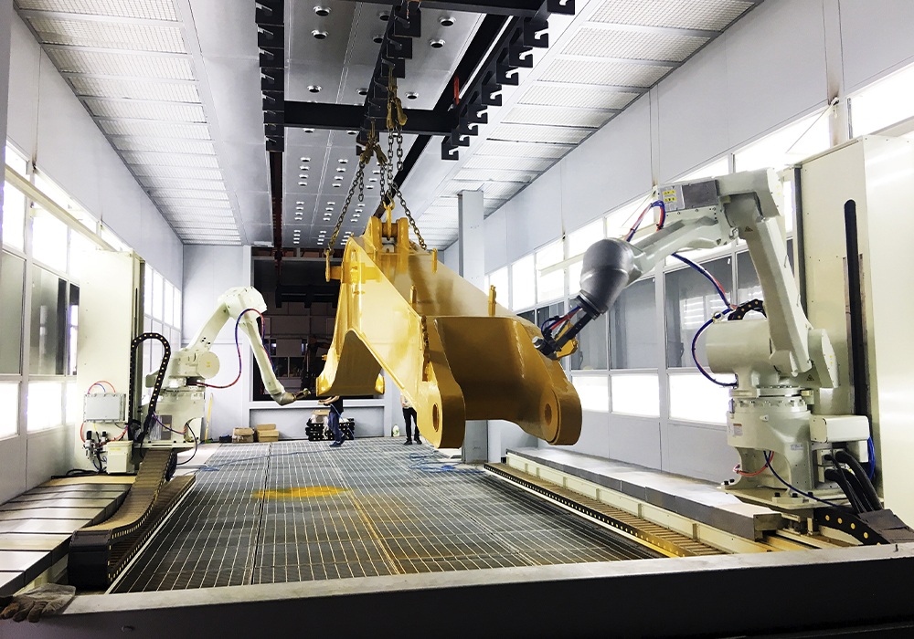此外,挖掘机动臂斗杆喷涂自动生产线、中国华体会集团官网铲斗焊接自动生产线上,各种机器人系统正在各条生产线上有序运转。在相同产能下,每班人员仅需2人,人员减少12人,场地减少一半,物料流转次数减少3倍。