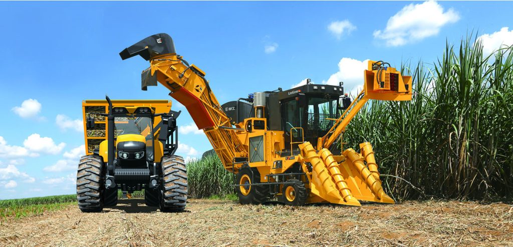图为正在作业的华体会体育甘蔗收获机